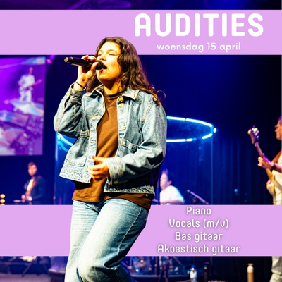 Aanbidding & DienstenOp woensdag 15 april hebben we weer audities voor onze aanbiddingsteams voor zowel op de Hoofdlocatie als de Centrumlocatie. We zoeken mensen die met hun muzikale talent God willen aanbidden.