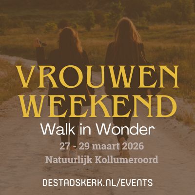 We nodigen alle vrouwen (18+) uit op een avontuur! Van 27-29 maart kun je deelnemen aan een Vrouwenweekend. Samen zetten we een heel weekend apart voor God en voor elkaar. We gaan naar een mooie locatie in de natuur (www.natuurlijkkollumeroord.nl).